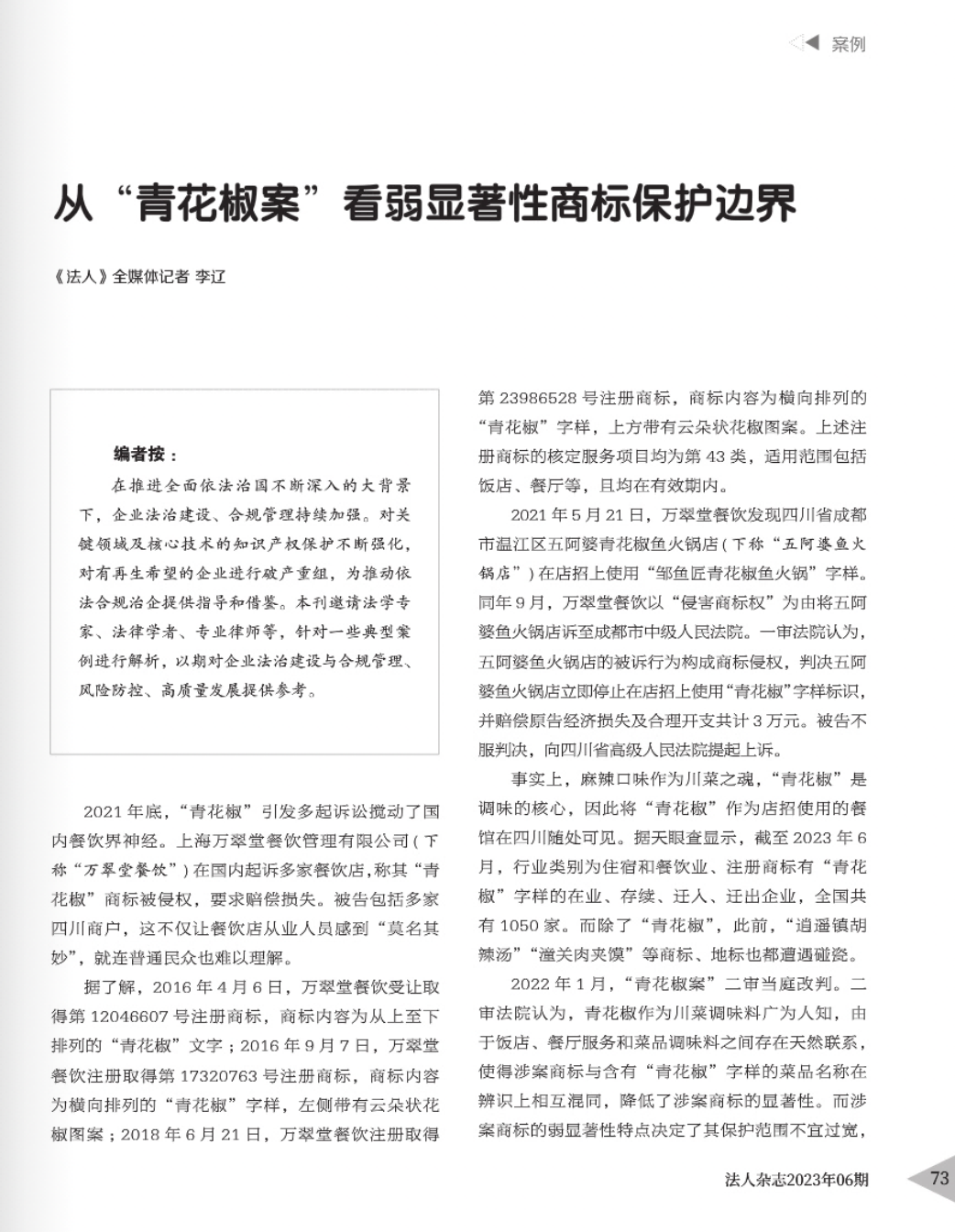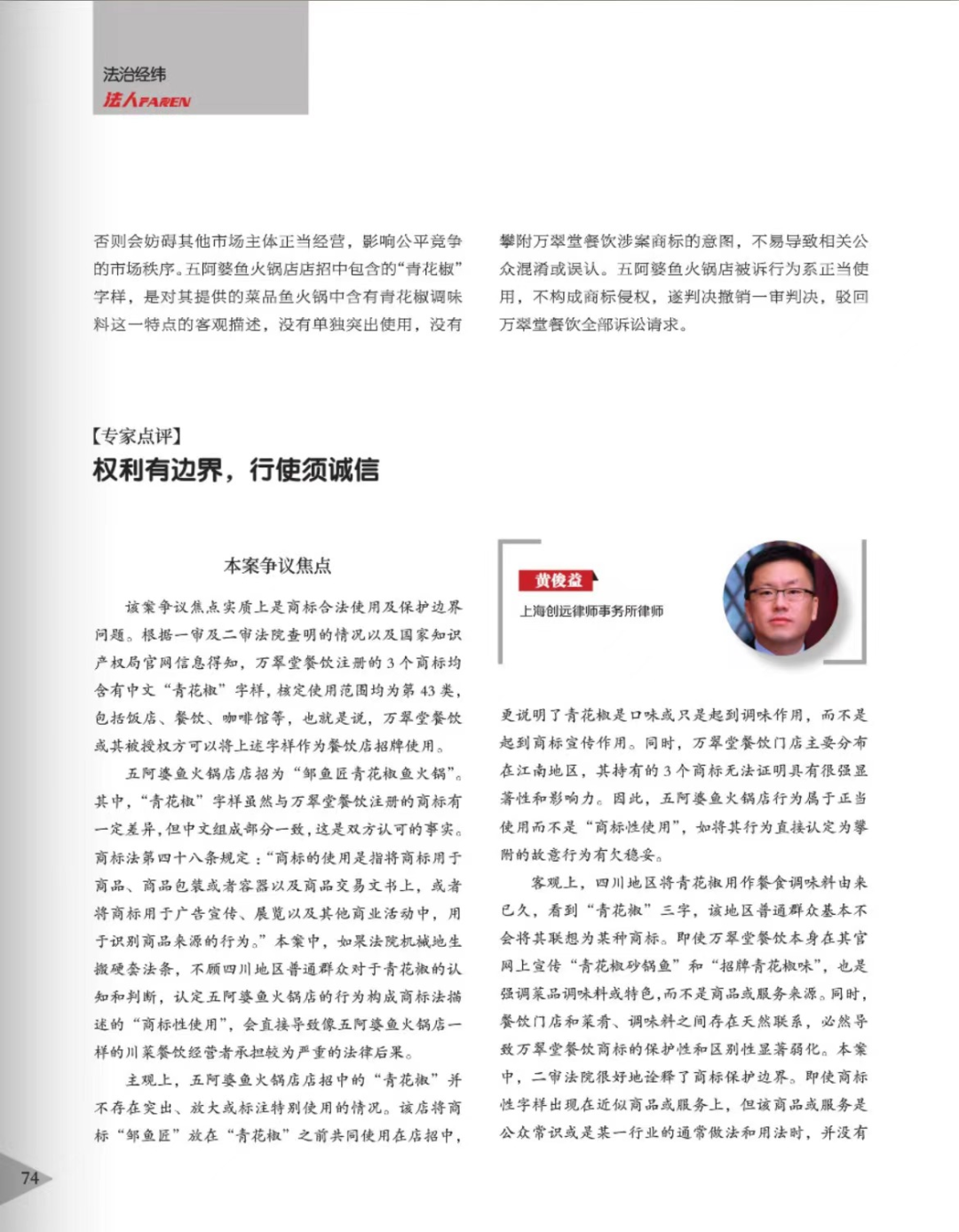 黑河辉知简讯 | 辉知队黄俊益律师应“法治日报”旗下杂志邀请,就“青花椒”案发表专家点评